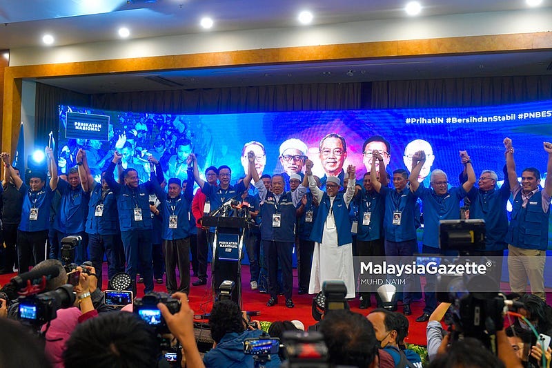 PN performed surprisingly well in GE15 by gaining more seats than what was predicted . A survey from Merdeka Center, an independent research firm based in Malaysia, predicted that PN would only gain 43 seats before GE15. However, PN successfully gained 74 seats; more than the prediction, and came second behind PH with 81 seats, both surpassing the long-ruling party, BN which only won 30 seats. The coalition’s ability to secure a significant number of seats shaped its role as the major opposition, or even the government-in-waiting in the Dewan Rakyat.