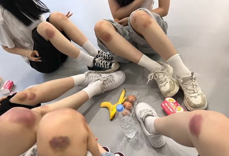 In addition to what was practically emotional abuse, the members of 9MUSES, much like other idols, were forced to practise and perform regardless of serious physical injuries. In this documentary, the trainees had been in a car accident, and one of the girls was forced to continue with her training despite having broken her arm.